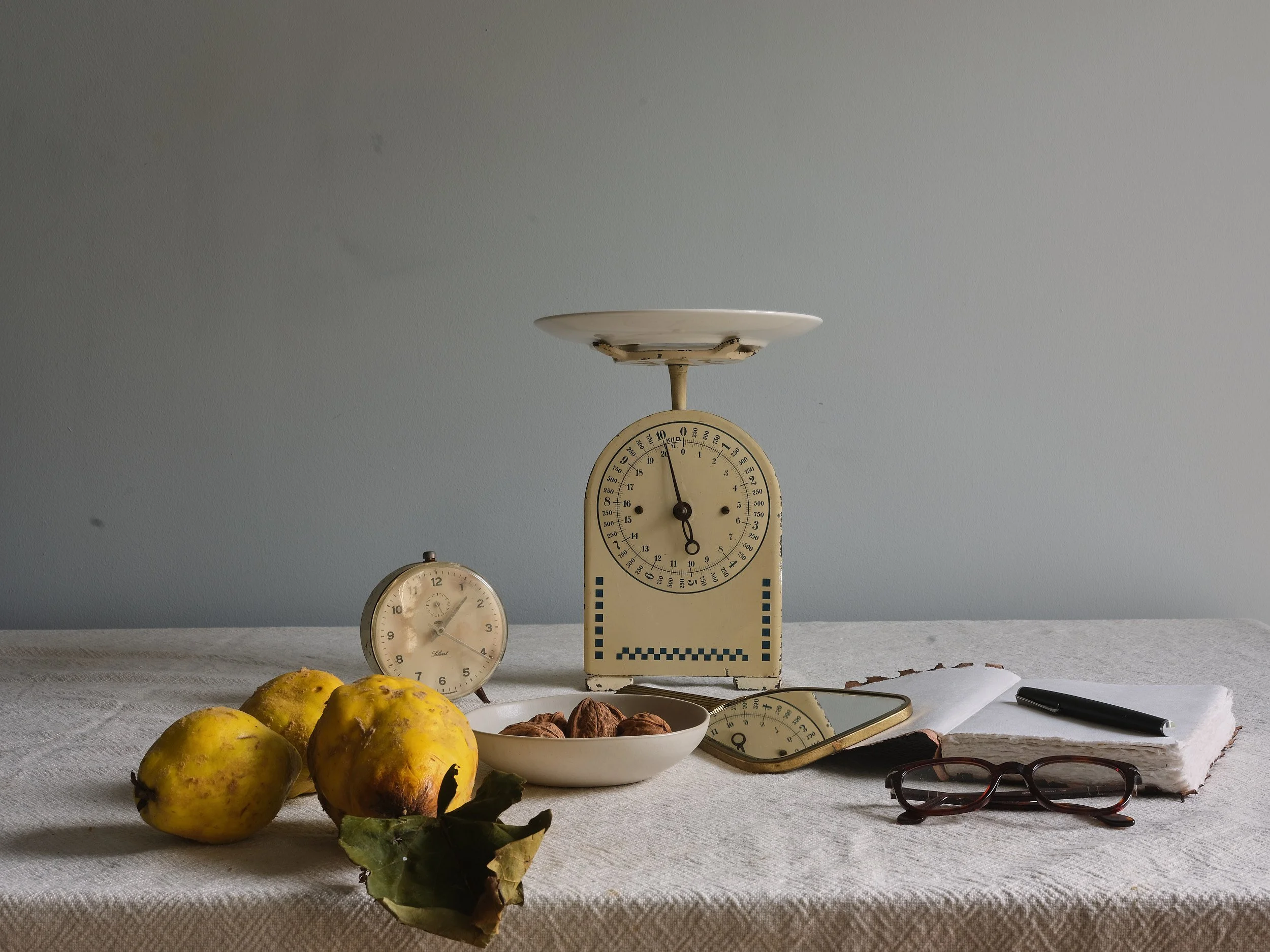 Ausgangspunkt war die Auseinandersetzung mit dem Stillleben als eigenständiger Bildform, angeregt durch den Besuch einer Ausstellung mit Arbeiten von Carl Schuch im Städel Museum Frankfurt. Das Stillleben erscheint hier nicht als dekoratives Motiv, sondern als bewusste Anordnung von Dingen, Licht und Material.